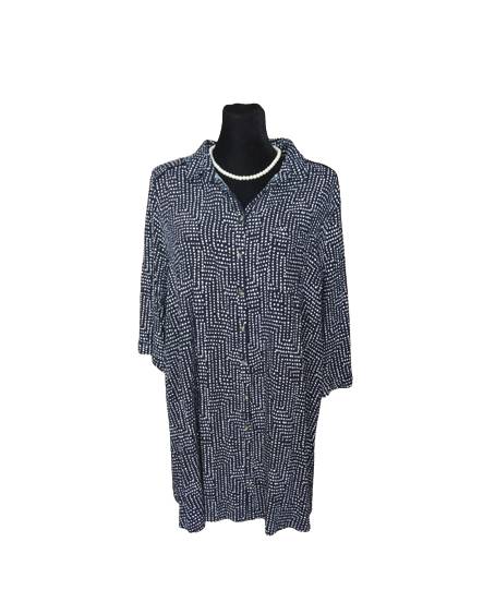 Papaya curve plus size fekete fehér apró pöttyös,végig gombos hosszú ujjú tunika